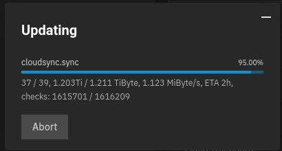 I believe, what happens is that Rsync fails because the server hangs. TrueNAS will always try again as long as it has connectivity to the destination. However, every time the transfer fails, it removes what has already been transferring, resulting in a loop where the first part of the file is being transferred before hanging again.