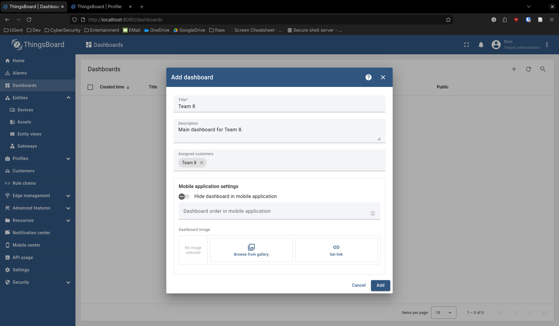 A customer represents an organization or group that will have access to specific devices and dashboards. We will set everything up as the tenant administrator account.
